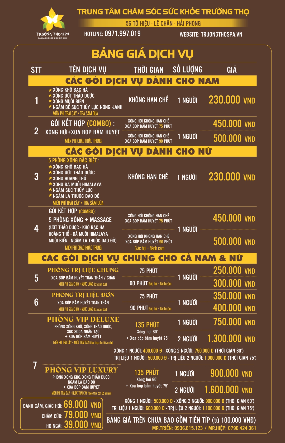 Để được phục vụ tốt nhất, chúng khách có thể đặt lịch hẹn trước qua số điện thoại: 0971.997.019 hoặc website: https://www.truongthospa.vn