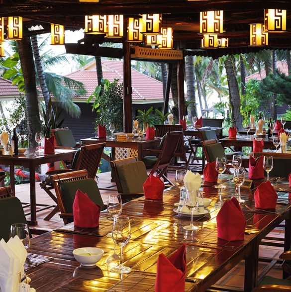 Lợp bằng lá dừa, bên cạnh bãi biển, lắng nghe âm thanh của sóng, thưởng thức bữa sáng tự chọn, hải sản đặc biệt Phú Quốc hàng ngày và bữa tiệc thịt nướng hải sản các ngày thứ Tư và thứ Bảy. Ngoài ra còn có quầy bar phục cocktail và bia tươi Tiger