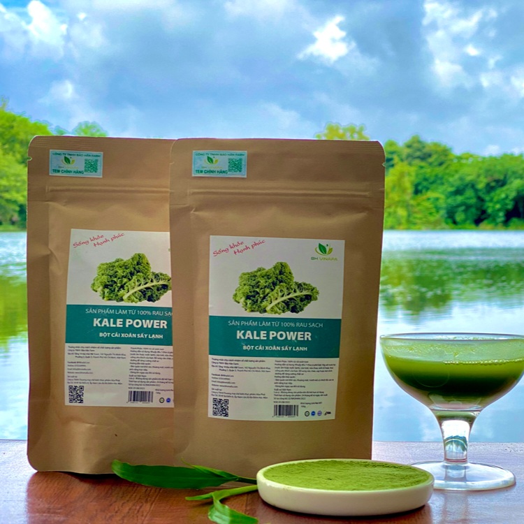 Bột cải kale là một sản phẩm được làm từ cải kale tươi được sấy bằng công nghệ sấy lạnh hiện đại và xay nhuyễn thành dạng bột. Quá trình sản xuất bột cải kale thường bao gồm việc thu hoạch cải kale tươi, sau đó sấy lạnh để loại bỏ nước và cuối cùng xay nhuyễn thành bột. Quá trình này giúp bảo quản hàm lượng dinh dưỡng của cải kale và tạo ra một sản phẩm tiện lợi có thể được sử dụng trong nhiều loại thực phẩm và đồ uống khác nhau.