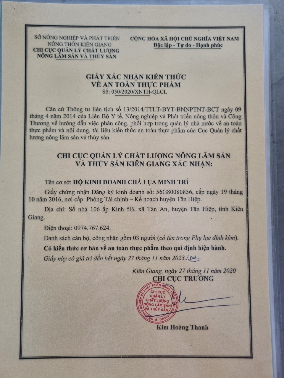 Cơ sở sản xuất Chả lụa Minh Trí cam kết chất lượng sản phẩm chả lụa: