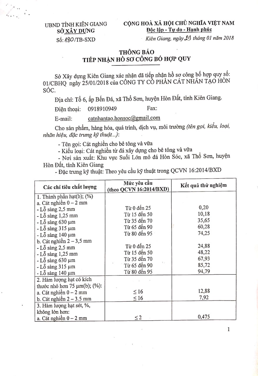 Cty CP Cát Nhân Tạo Hòn Sóc