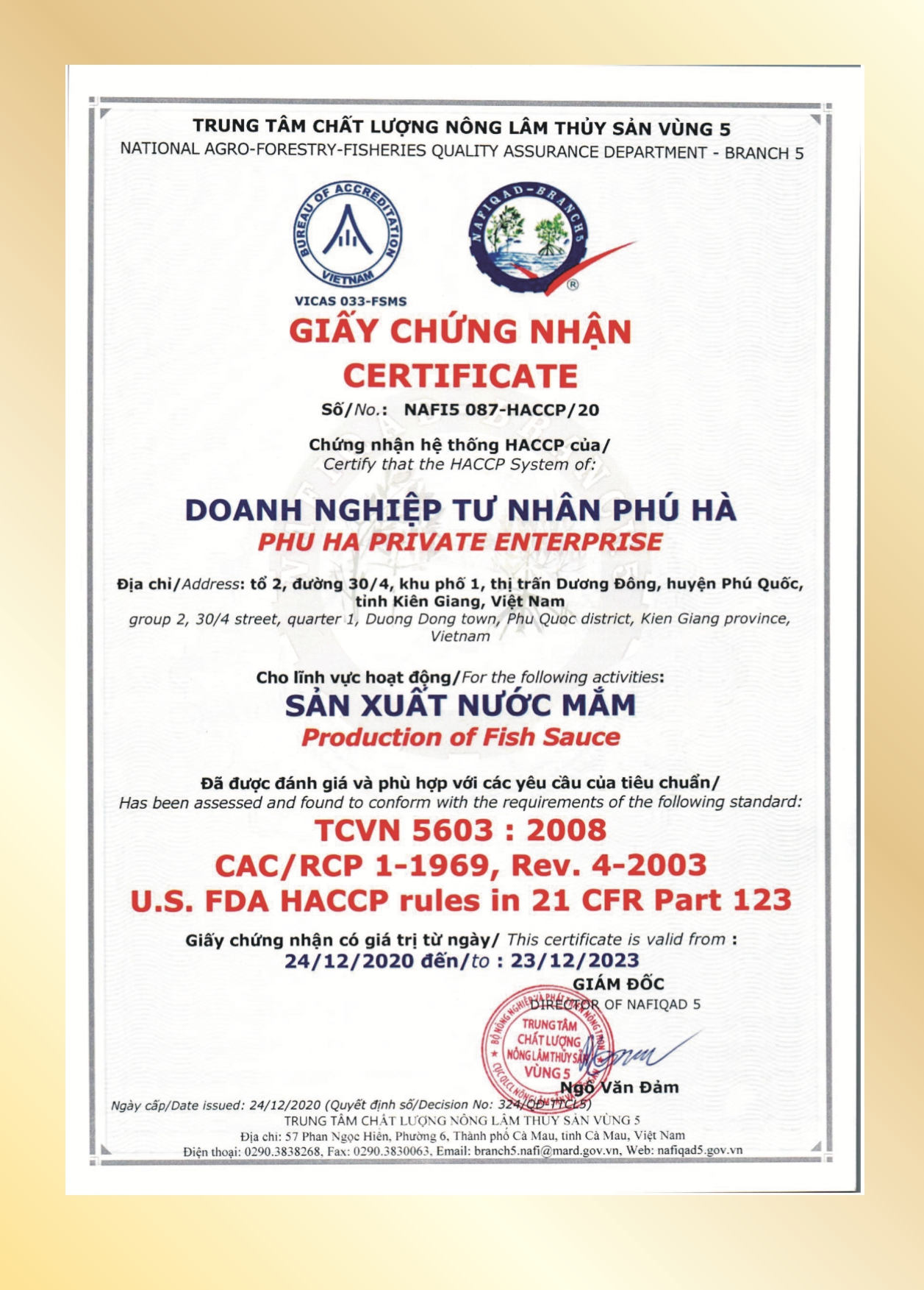 Bên cạnh đó, nước mắm của Phú Quốc vừa được liên minh Châu Âu bảo hộ là sản phẩm đạt chỉ dẫn địa lý, đây chính là thành quả cũng như sự xác nhận về chất lượng của nước mắm Phú Quốc đối với người tiêu dùng. Nước mắm Phú Hà tự hào là một trong những doanh nghiệp đầu tiên đáp ứng được những quy định, yêu cầu nghiêm ngặt để cung cấp đến cho người tiêu dùng trong và ngoài nước những sản phẩm nước mắm Phú Quốc mang chỉ dẫn địa lý.