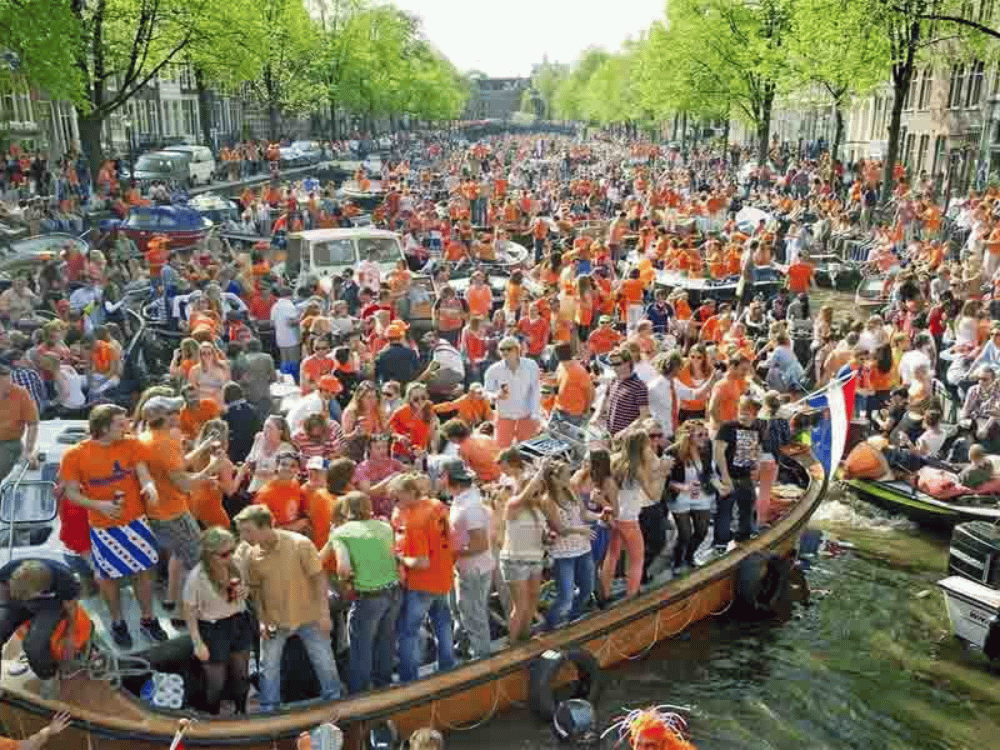 Trong lễ hội King’s day, kỷ niệm ngày sinh của vua Willem Alexander (27/4), cả đất nước Hà Lan sẽ khoác lên mình màu cam rực rỡ. Người dân ra đường chúc mừng và tổ chức lễ hội đường phố, chợ trời và các buổi biểu diễn âm nhạc.