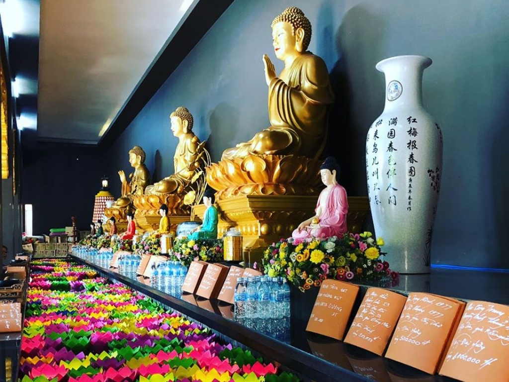 Ngay khi đặt chân đến chùa, bạn sẽ cảm nhận được một không gian thanh tịnh, an yên đến lạ. Những mái ngói rêu phong, tường gạch cũ kỹ, từng nét chạm trổ rồng mây hay pho tượng Quan Thế Âm cao 4 mét – tất cả như gói gọn ký ức một thời.