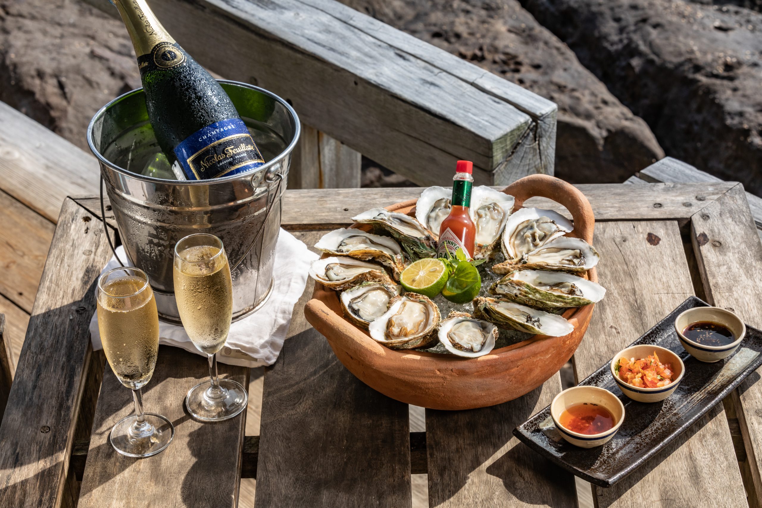 Nhà hàng On the Rock tọa lạc tại địa điểm ngắm hoàng hôn tuyệt vời bên rìa đại dương. Ngày qua đêm xuống, bầu trời vàng óng từ từ tan biến để lộ ra những vì sao, ai đó có thể nói rằng đây là một trong những nơi lãng mạn nhất ở Việt Nam. Giữa không gian đơn giản, đây là nơi hoàn hảo để khám phá lại những gì tinh túy nhất của ẩm thực, rượu ngon và một quang cảnh đẹp.