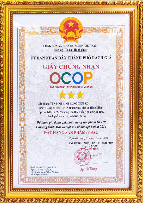 - Đạt chứng nhận OCOP 3 sao, khẳng định uy tín và chất lượng.