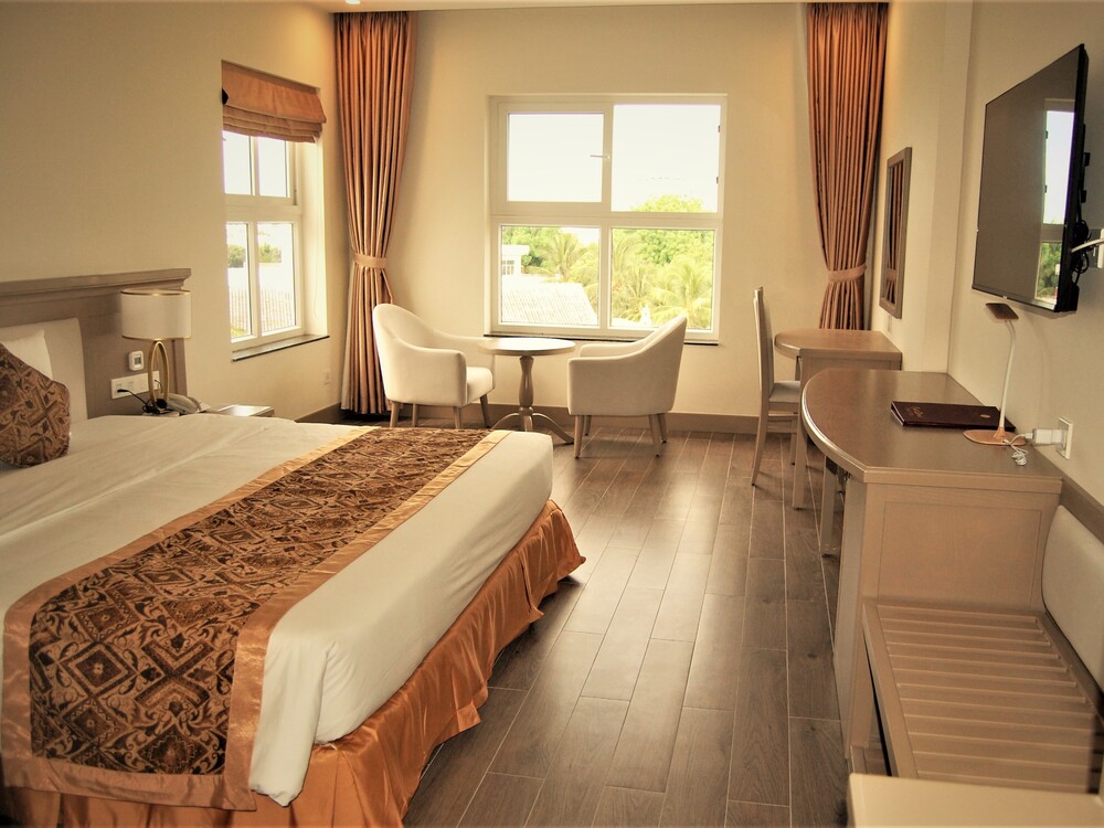 Nằm ở tầng cao nhất của khu nghỉ dưỡng, các phòng nghỉ với tầm nhìn tuyệt đẹp hướng ra biển Tây và khu đô thị mới Tây Bắc hoặc cảnh sân vườn thơ mộng của khu nghỉ dưỡng cùng thành phố Rạch Giá đáp ứng nhu cầu Quý khách về phòng nghỉ sang trọng trong thời gian lưu trú tại thành phố biển Rạch Giá.