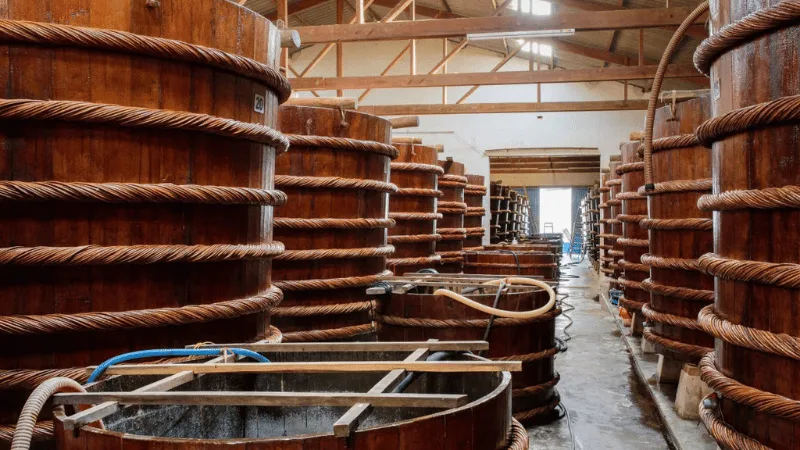 Hỗn hợp cá cơm và muối được ủ trong thùng gỗ bời lời lớn từ 12-18 tháng. Thời gian ủ dài giúp nước mắm đạt hương thơm đậm đà, vị ngon tự nhiên, mà không cần bất kỳ chất phụ gia nào.