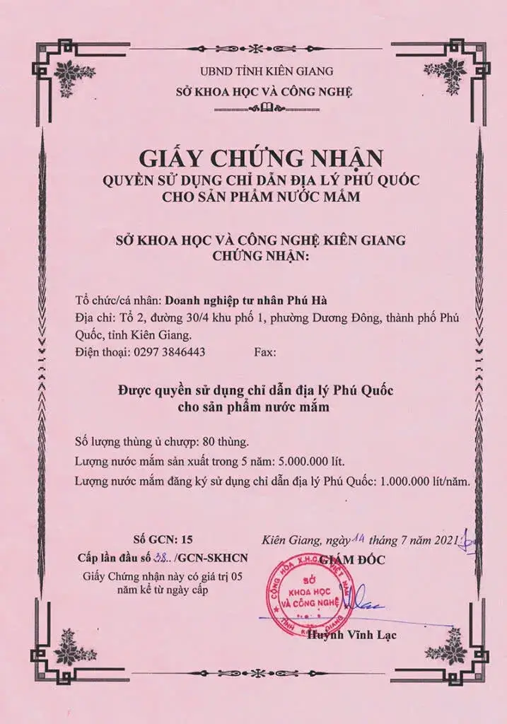 Phú Hà vinh dự là một trong những doanh nghiệp tiên phong đạt đầy đủ quy chuẩn khắt khe để cung cấp nước mắm Phú Quốc mang chỉ dẫn địa lý được Liên minh Châu Âu bảo hộ. Đây không chỉ là dấu mốc quan trọng mà còn khẳng định uy tín, chất lượng và vị thế của nước mắm Phú Hà trên thị trường trong nước và quốc tế.
