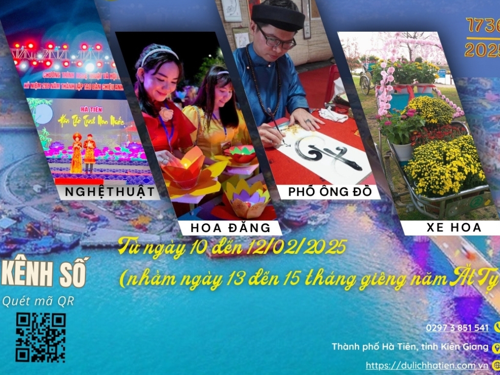 Tết này, mời Bạn và Gia đình ghé thăm quê hương của chúng tôi, vùng đất biên thùy Hà Tiên (tỉnh Kiên Giang), để có những phút giây thưởng ngoạn thắng cảnh, những di tích lịch sử gắn liền với vùng đất biên cương, và để được tham gia Lễ hội kỷ niệm 289 năm thành lập Tao đàn Chiêu Anh Các được diễn ra từ ngày 10 đến 12 tháng 02 năm 2025 (nhằm ngày 13 đến 15 tháng Giêng năm Ất Tỵ)
