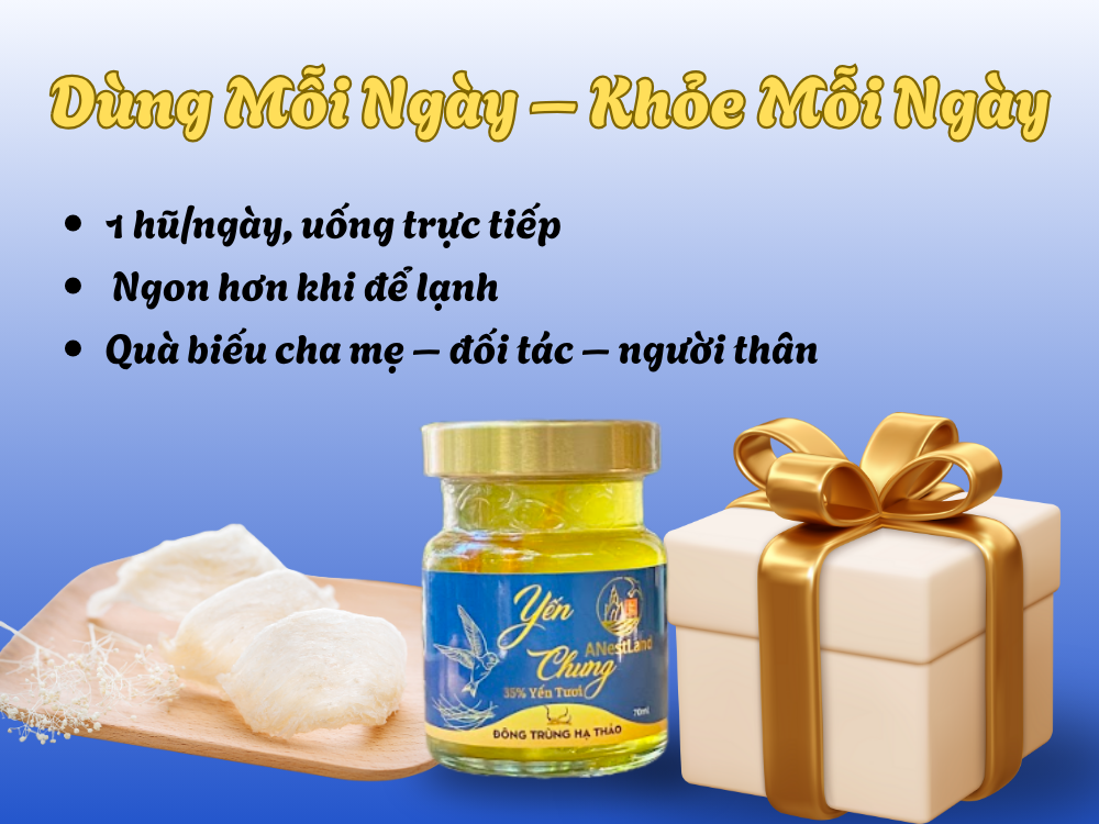 Yến Chưng Đông Trùng Hạ Thảo ANestLand là lựa chọn phù hợp cho những ai muốn chăm sóc sức khỏe một cách nhẹ nhàng, lâu dài và an toàn. Sản phẩm không chỉ tiện dụng, dễ uống mà còn mang lại nhiều lợi ích thực tế mà bạn có thể cảm nhận rõ ràng chỉ sau 1–2 tuần sử dụng đều đặn.