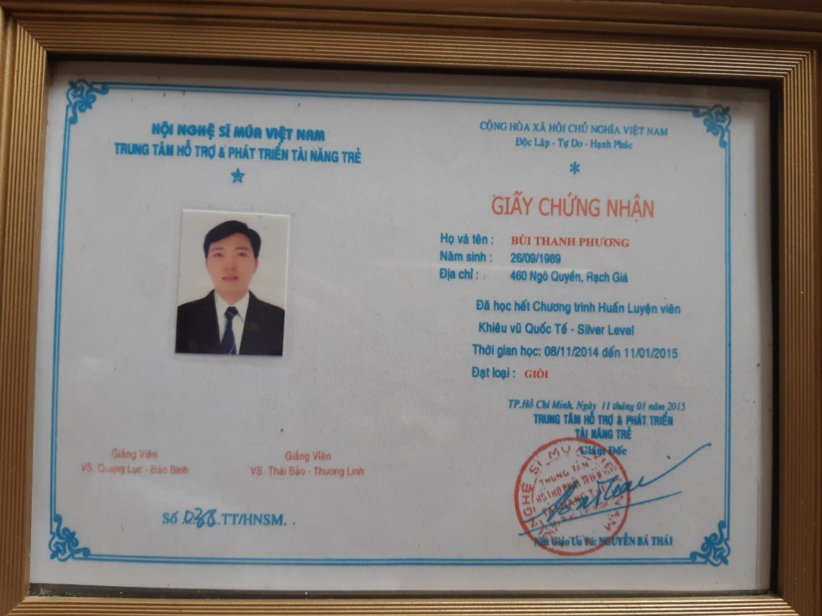 Đây là các chứng nhận, bằng cấp mà Khiêu Vũ Thanh Phương nhận được trong thời gian qua