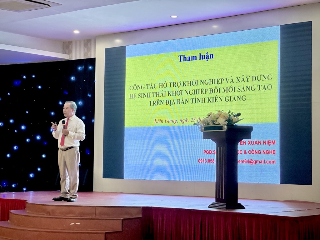Đại diện phát biểu tại buổi hội thảo, ông Lê Trung Hồ - Phó chủ tịch UBND tỉnh Kiên Giang đã nêu rõ và nhấn mạnh rằng khởi nghiệp, đổi mới, sáng tạo không chỉ để tỉnh ta tạo ra giá trị kinh tế mà còn thúc đẩy sự phát triển bền vững cho xã hội. Ông khẳng định rằng tỉnh Kiên Giang đã và đang thực hiện nhiều hoạt động thiết thực để thúc đẩy khởi nghiệp, từ việc đào tạo nguồn nhân lực đến việc tổ chức các cuộc thi và diễn đàn khởi nghiệp.