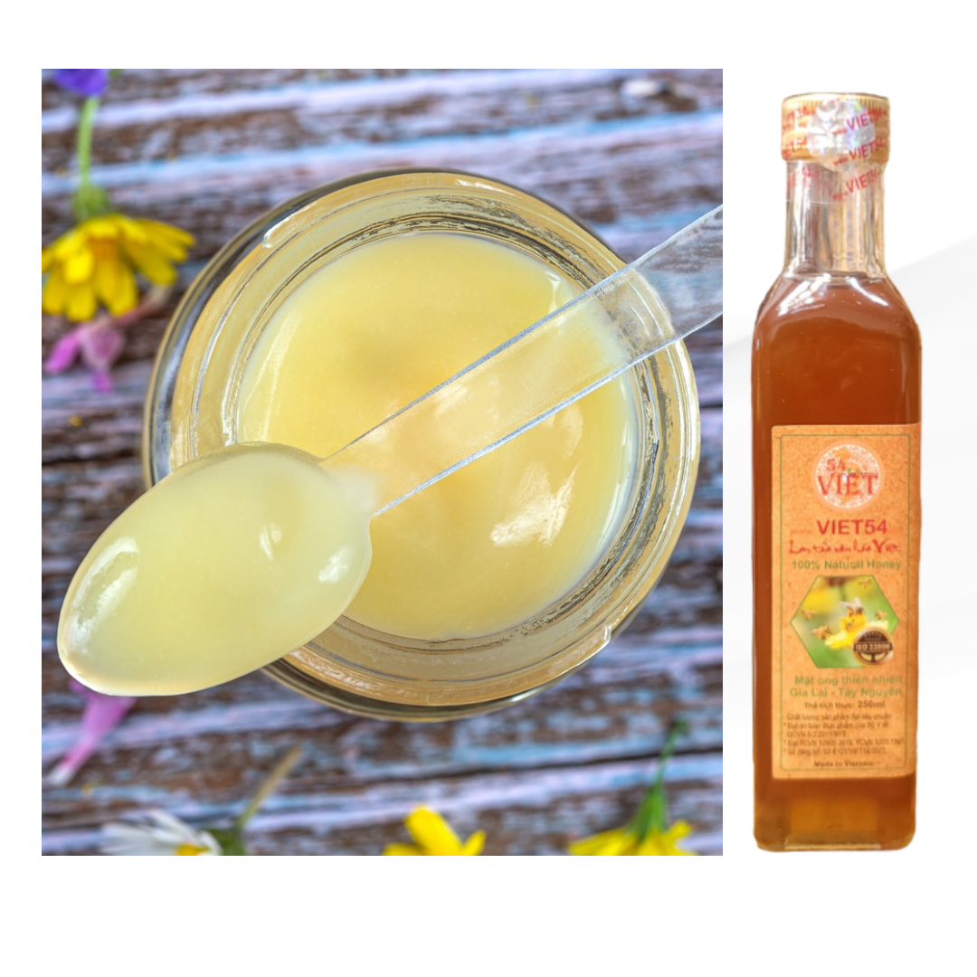 Sữa ong chúa nguyên chất sau khi được lấy ra từ nụ ong chúa, thường nó sẽ có màu trắng đục hoặc vàng nhạt với kết cấu sệt.