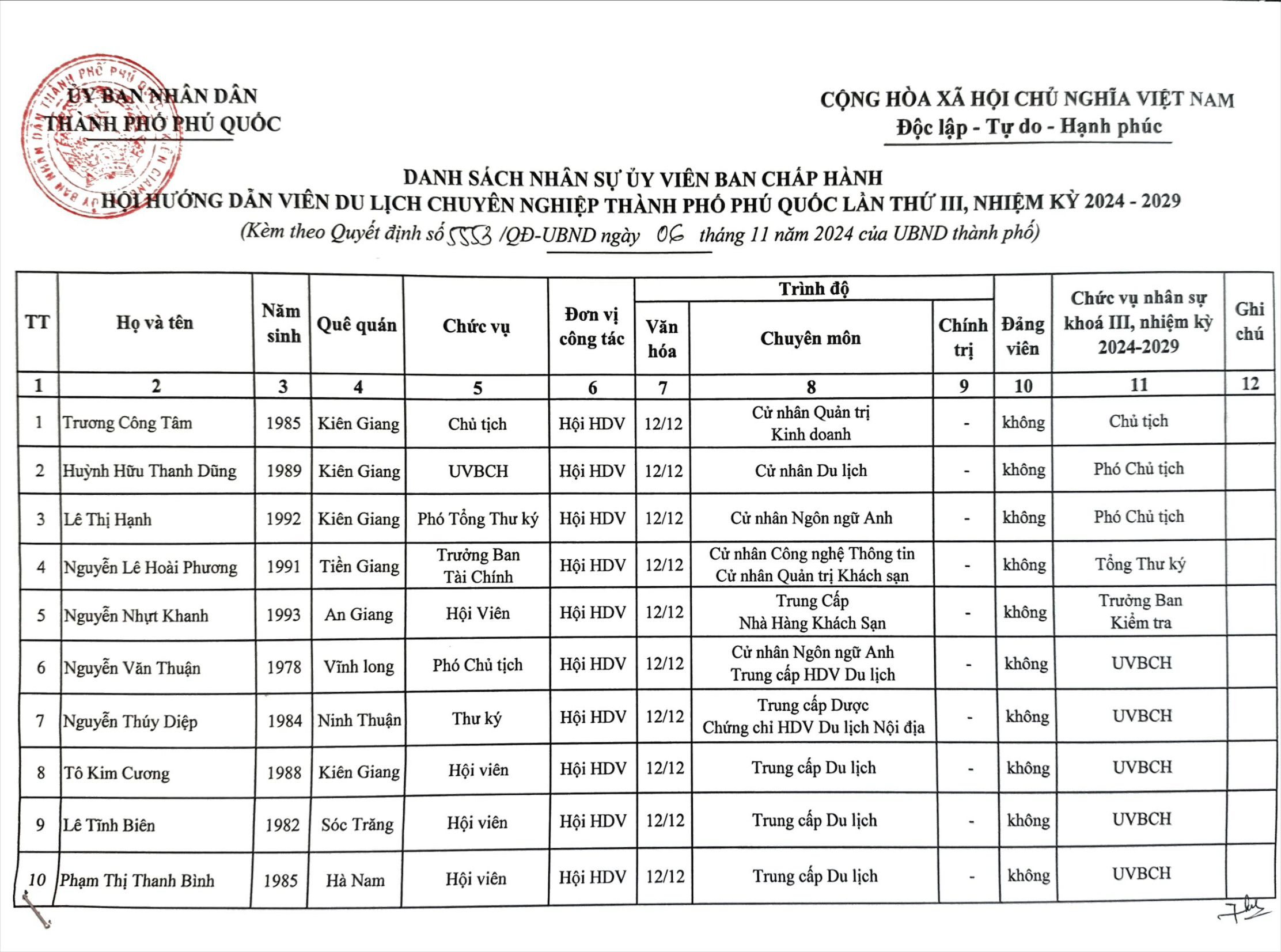 Hội Hướng Dẫn Viên Du Lịch Chuyên Nghiệp Thành Phố Phú Quốc quy tụ những hướng dẫn viên du lịch giàu kinh nghiệm, chuyên môn cao và đam mê khám phá, quảng bá vẻ đẹp của đảo ngọc Phú Quốc.